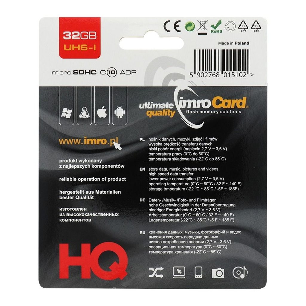 Micro-SD karta o kapacitě 32 GB. Součástí balení je SD adaptér.