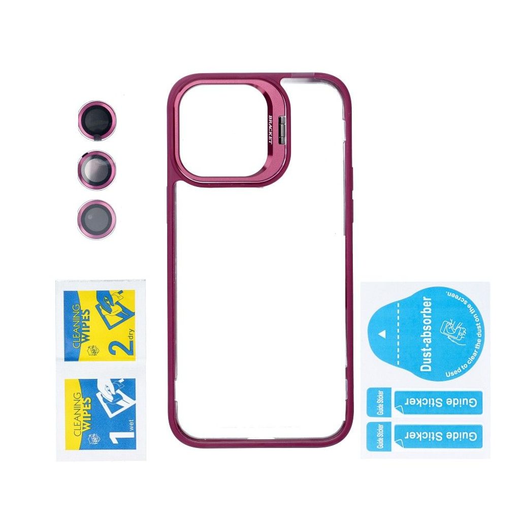 Puzdro Bracket je inovatívne riešenie pre ľudí, ktorí si cenia funkčnosť a estetiku. Výrobok má elegantný, farebný rám a priehľadný povrch na zadnej strane. Súprava obsahuje čistiace handričky a kryty na fotoaparát.
