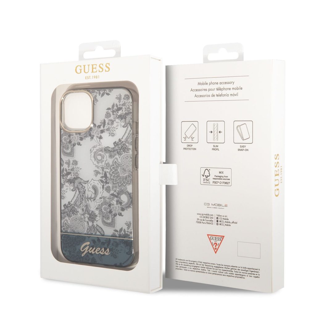 Materiál na zadnej strane krytu je potlačený polykarbonát, odolný proti poškriabaniu a je doplnený decentným logom Guess.