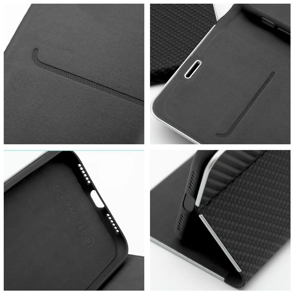 Moderní zavírací obal typu Luna Book Carbon poskytuje účinnou ochranu pro váš mobilní telefon. Matný vroubkovaný materiál ve spojení s lesklým kovovým rámečkem vytváří jednoduchý, ovšem velmi elegantní a stylový design. Toto pouzdro představuje originálního společníka pro každodenní užití, a to jak do práce, tak třeba na cesty. Měkký semišový materiál uvnitř a v části držáku chrání zařízení z obou stran před poškozením a poškrábáním.