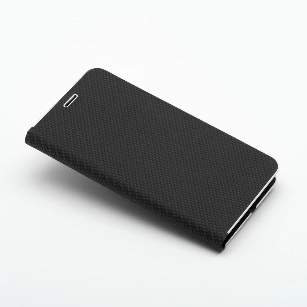 Moderní zavírací obal typu Luna Book Carbon poskytuje účinnou ochranu pro váš mobilní telefon. Matný vroubkovaný materiál ve spojení s lesklým kovovým rámečkem vytváří jednoduchý, ovšem velmi elegantní a stylový design. Toto pouzdro představuje originálního společníka pro každodenní užití, a to jak do práce, tak třeba na cesty. Měkký semišový materiál uvnitř a v části držáku chrání zařízení z obou stran před poškozením a poškrábáním.