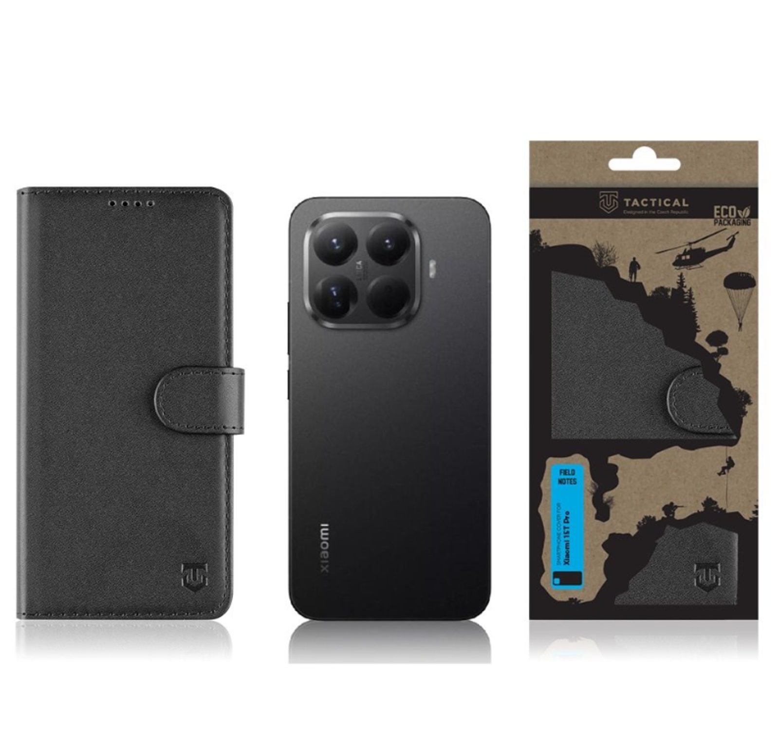 Tactical Field Notes pouzdro s otevíráním do boku, ve stylovém provedení věrné imitace kůže a zavíráním s přezkou na magnet.