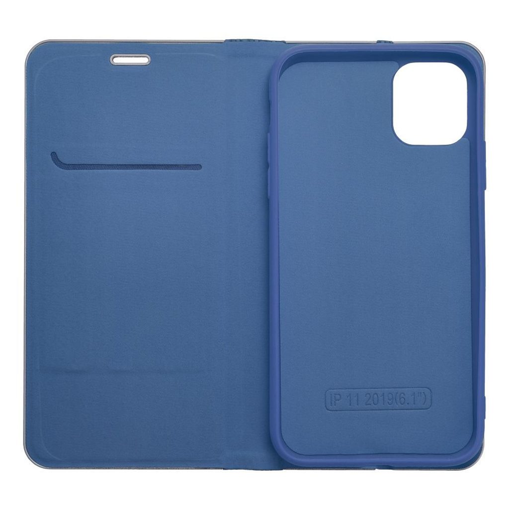 Elegantné puzdro s kovovým rámom na zvýšenú ochranu telefónu. Atraktívna textúra a materiál príjemný na dotyk vytvárajú štýlové puzdro, ktoré podčiarkuje moderný dizajn zariadenia. Mäkký semišový materiál vo vnútri a v časti držiaka chráni zariadenie z oboch strán pred poškodením a poškriabaním. Držiak je vyrobený z pružného silikónu a má výrezy. Hliníkový rám na okrajoch robí puzdro pevnejším a ešte viac chráni zariadenie. Kombinácia kovu a originálneho materiálu vytvára jedinečnú a modernú kompozíciu, vďaka ktorej zariadenie vyzerá štýlovo a elegantne. Puzdro má aj malé vrecko na praktické doklady alebo bankovky. Puzdro je vybavené horizontálnou základňou na prezeranie filmov alebo fotografií. Silný magnet zabezpečuje jednoduché zatváranie a otváranie puzdra a zabraňuje náhodnému otvoreniu.